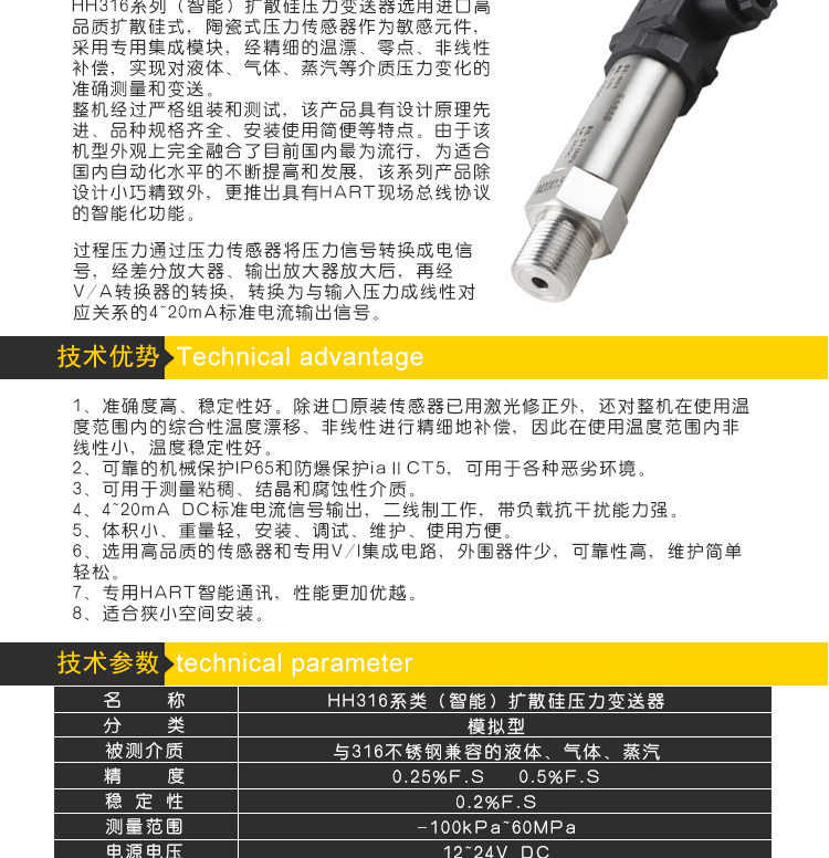 擴(kuò)散硅壓力變送器