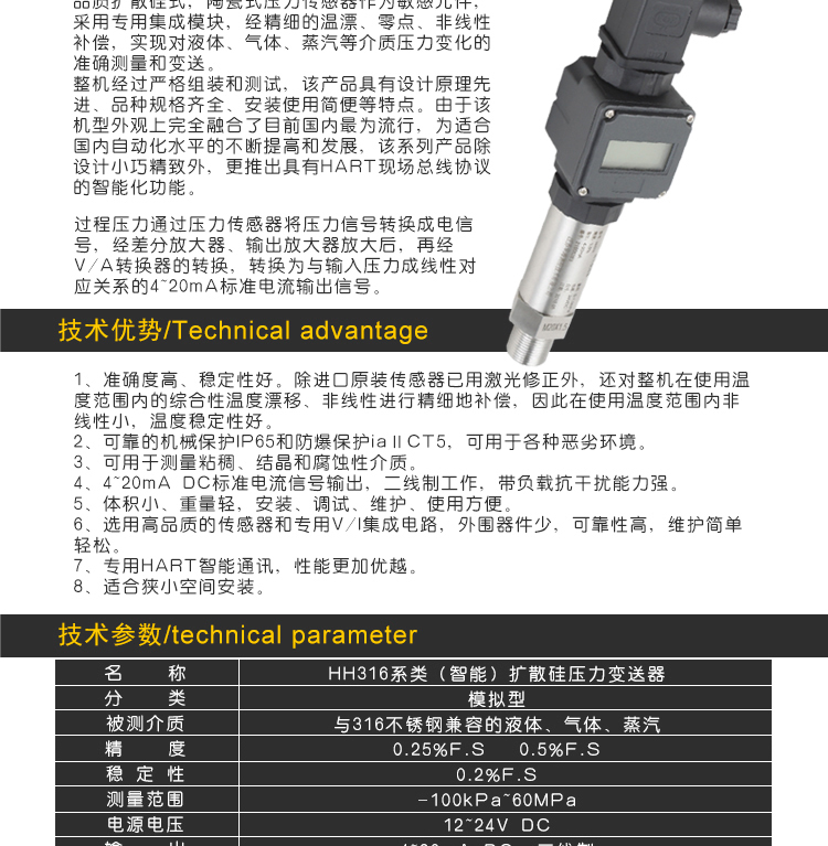 傳真:0517-86919678擴(kuò)散硅壓力變送器
