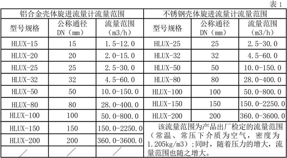 3、流量計(jì)規(guī)格、基本參數(shù)和性能指標(biāo)(見表1)