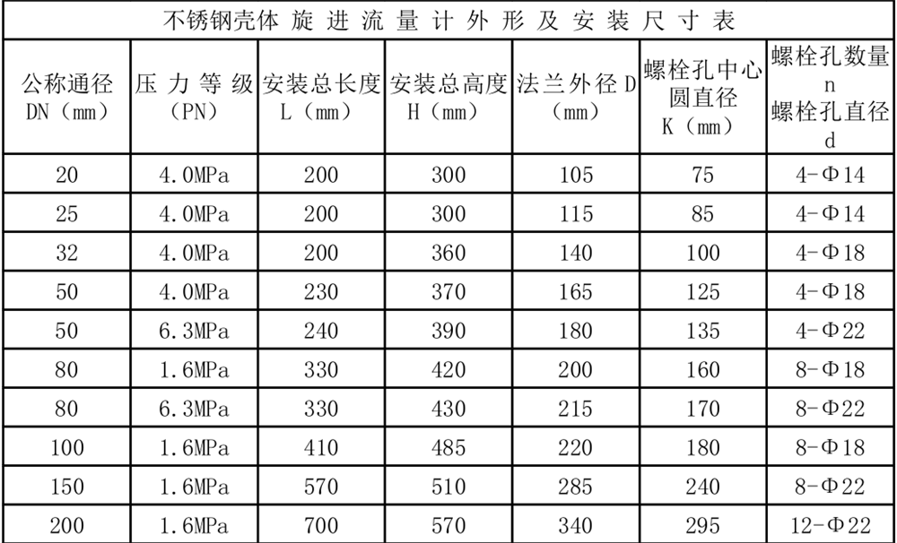 注:1、上表所有數(shù)據(jù)僅基于標(biāo)準(zhǔn)型旋進(jìn)流量計(jì);