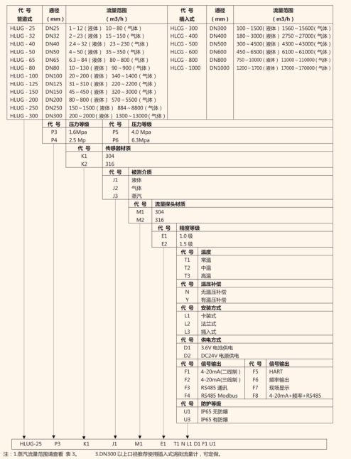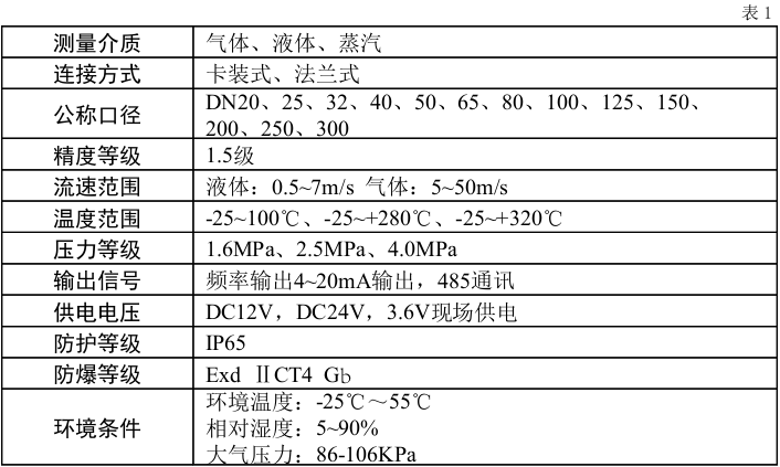 2、液體、工況氣體流量范圍(見(jiàn)表2)