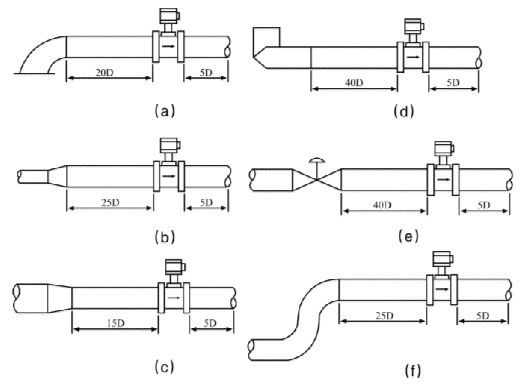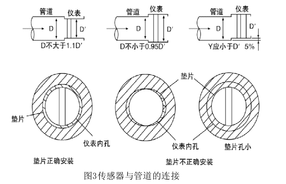 2)配管應(yīng)與傳感器同心,同軸度應(yīng)不小于0.05D′