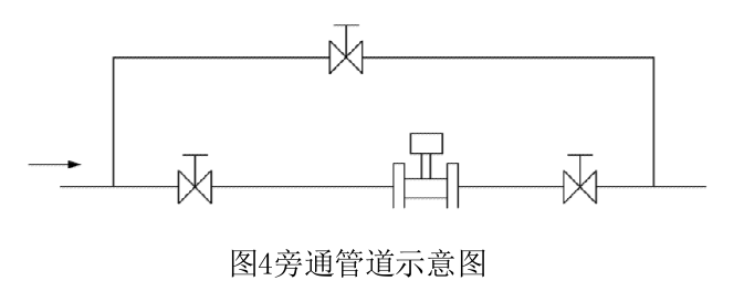 3)密封墊不能凸入管道內(nèi),其內(nèi)徑可比傳感器內(nèi)徑大1~2mm 4)如需斷流檢查與清洗傳感器,應(yīng)設(shè)置旁通管道如圖4所示。