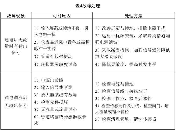 在通電不通流時(shí)轉(zhuǎn)換器應(yīng)無(wú)輸出,瞬時(shí)流量指示為零,累積流量無(wú)變化,否則首先 檢查是否因信號(hào)線(xiàn)屏蔽或接地不良,或管道震動(dòng)強(qiáng)烈而引入干擾信號(hào)。如確認(rèn)不是上述 原因時(shí),可調(diào)整轉(zhuǎn)換器內(nèi)電位器,降低放大器增益或提高整形電路觸發(fā)電平,直至輸出 為零。