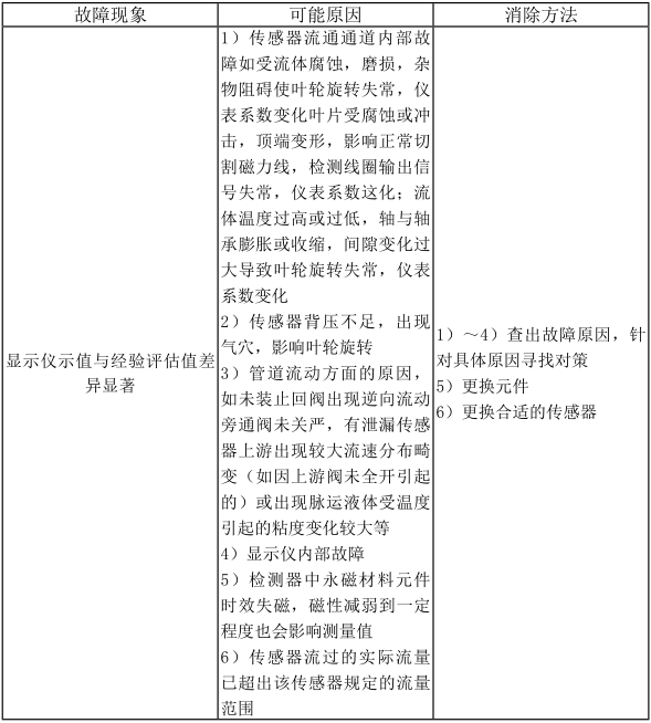 傳感器長期使用因軸承磨損等原因,儀表系數(shù)會發(fā)生變化,應定期進行離線或在 線校驗。若流量超出允許范圍,應更換傳感器。